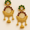 Add to cartElegant gold-tone chandbali earrings featuring delicate blush pink floral motifs, adorned with sparkling Kundan stones and pearl bead hangings. A perfect blend of tradition and modern grace for festive and bridal wear.