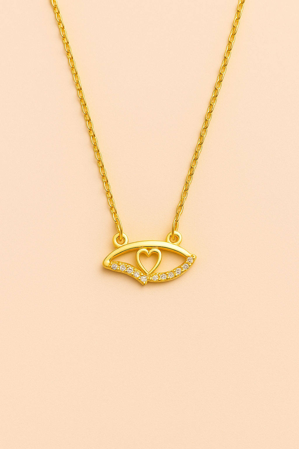 Add to cartA delicate gold-plated pendant necklace featuring a stylish oval link design with a heart accent, encrusted with shimmering cubic zirconia. A perfect blend of elegance and romance.